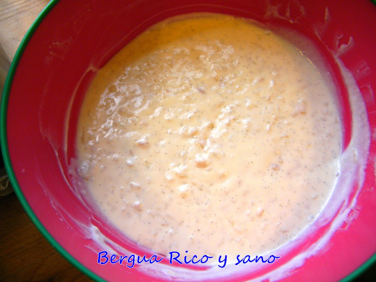 3. Vertemos la mezcla en un cuenco lo suficientemente grande, cubrimos con papel transparente y reservamos en el frigorífico durante un par de horas para que se enfríe y espese (si podemos, hasta el día siguiente).
