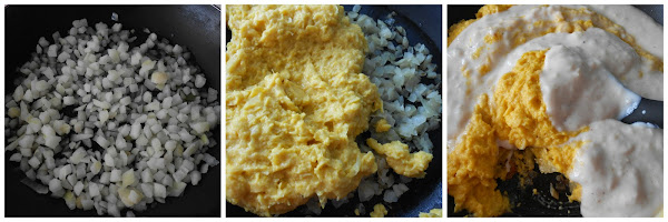 Colocar el aceite en una sartén y dorar la cebolla. Una vez cocida, agregar el maíz hecho crema ( lo proceso con la minipimer) y añadimos la salsa bechamel. Condimentamos on sal, pimienta y orégano y dejamos enfriar.