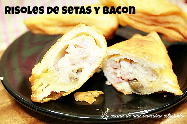 El relleno lo he tuneado, la verdad es que me apetecía rellenarlos de algo más sabrosón, jajaja, así que tenía unas setas congeladas en la nevera (la verdad es que intento tener una bolsita siempre pues es un gran aliado para cualquier acompañamiento) un poco de bacon y tuneo al canto.