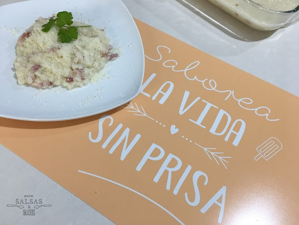 Agrega el bacon y programa 4 min, varoma, giro a la izquierda y vel cuchara.