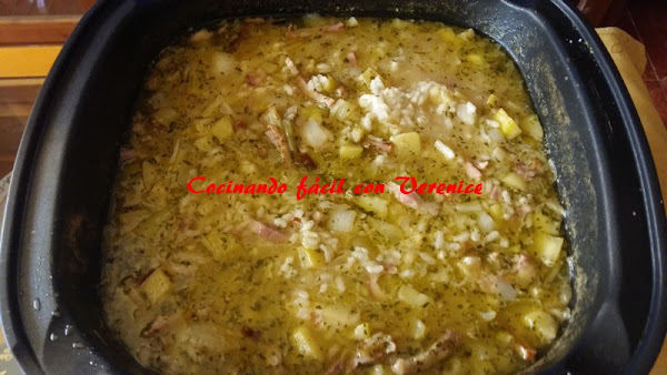 Se prueba de dureza el grano y de sabor el caldo y se rectifica de sal si es preciso.