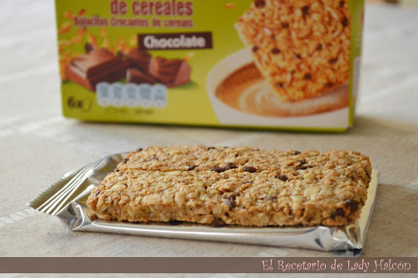 Nutri-Grain galletas crujiente de cereales con chocolate de Kellog"s (2,50 ?)Con estas galletas estoy en los dos extremos, no sé si realmente me gustan o no jajaja. Tienen un sabor muy rico a cereales y chocolate, vienen en paquetitos individuales (6 x caja) por lo que son ideales para llevártelas al trabajo, pero son muy densas y algo pesadas. Cuando llevaba la mitad de una de ellas ya me cansaba y al final la acababa comiendo en dos días... cosa que, por otro lado, no está mal, así duran más jajaja. Casi me dejo los ojos leyendo los ingredientes, pero no he podido ver bien cuáles son esos cereales integrales que lleva... Sé que contienen un 46% de avena integral, arroz inflado y malta de cebada y un montón de cosas más que casi ni entiendo.