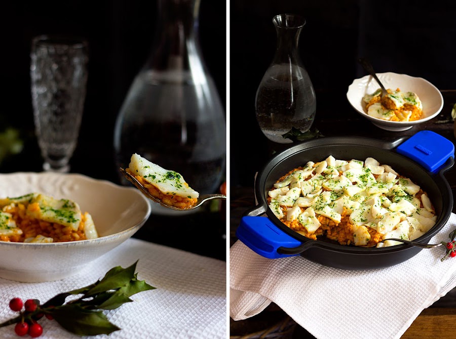 Después de los atracones y los excesos de éstas semanas, me apetecía volver a la rutina, a los platos sencillos y deliciosos exentos de complicaciones pero llenos de sabor, por eso para la vuelta me he decantado por un arroz, en concreto un risotto que he acompañado de éste maravilloso y recomendable bacalao Katailo.