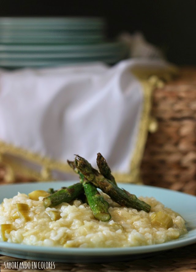 Entre tanto dulces ya tocaba algo salado. Y qué mejor que aprovechar las verduras de temporada! Los espárragos ahora están riquísimos, y bien de precio, así es que para dar el toque salado me decidí por un risotto con espárragos.