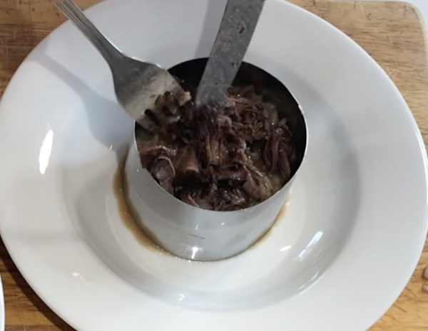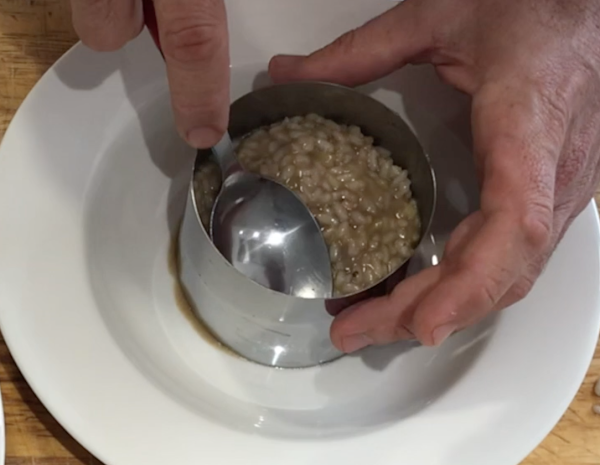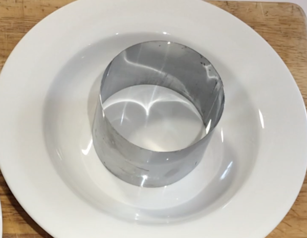 Nos disponemos a emplatar. Ponemos un molde en el centro del plato.