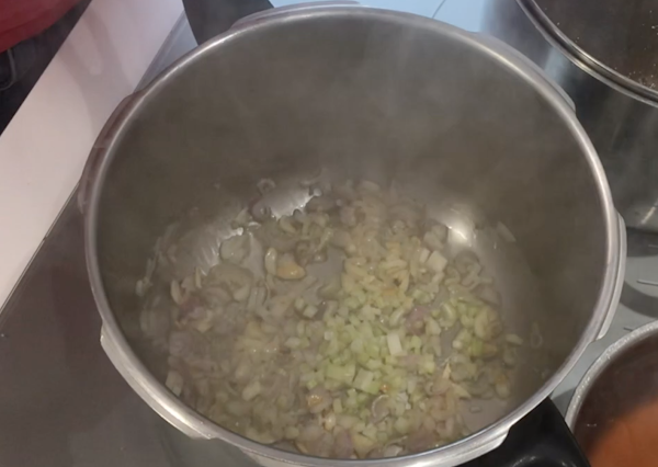 Dejamos sofreír todo a potencia media durante 5 minutos.