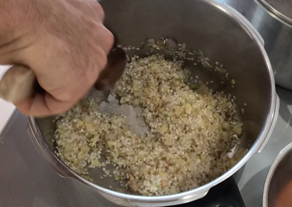 Damos vueltas al arroz para que coja toda la sustancia del sofrito.