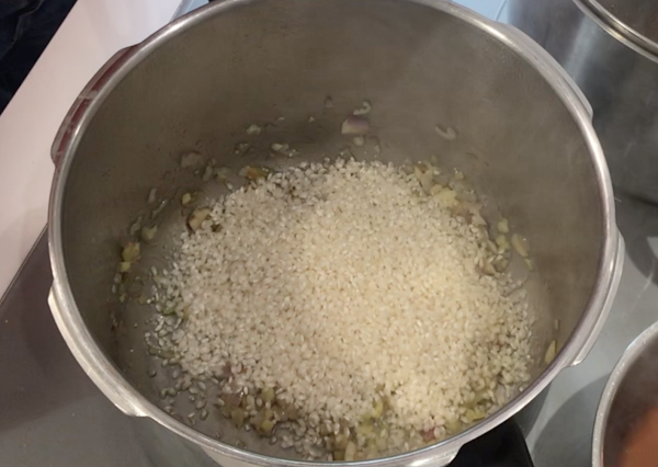 Nuestro risotto no llevará nada de queso y al final lo mantecaremos con la misma salsa de cocción del rabo de toro, ya que contiene suficiente grasa para mantecar nuestro plato correctamente.