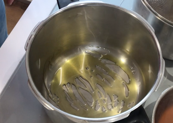 Ponemos en una cazuela aproximadamente dos cucharadas soperas de aceite de oliva.