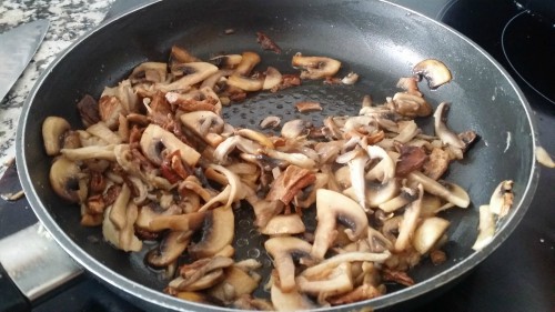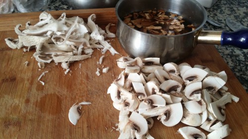 -150 gramos de setas mezcladas (en mi caso champiñón, setas de cardo y boletus. El - boletus lo tenía deshidratado, regalo de mi amigo Toni).