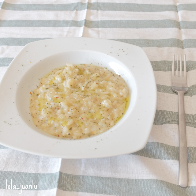 Cuando el grano está al dente, salpimentamos, le echamos la mantequilla y el queso rallado y lo apartamos del fuego, dejándolo reposar unos minutos.
