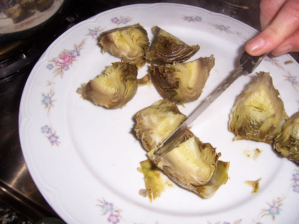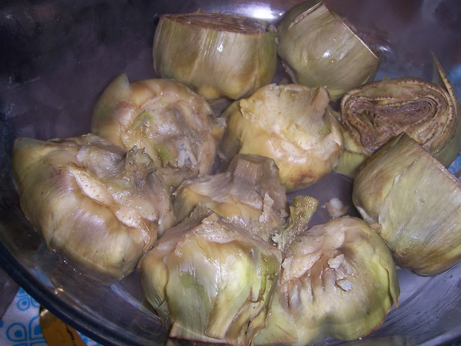 Añadimos las alcachofas y las mezclamos muy suavemente para que no se nos destrocen, dejamos reposar unos minutos y listo para servir. Buen provecho.