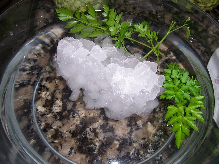 Quitamos las hojas exteriores, las cortamos por la mitad más o menos que es la parte en las que las hojas son más fibrosas y eliminamos también las hojas de la parte del tallo hasta que las hojas sean más blanquecinas. Las vamos poniendo en el agua con perejil y hielo para que no se pongan negras.