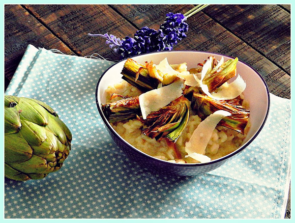 A las puertas de el fin de semana, os traigo un rico risotto (de esos que taaaaaaanto me gustan) un poco diferente, únicamente con alcachofas, aprovechando la verdura de temporada. Además es una verdura ríquisima, llena de fibra y de vitaminas, ideal para reducir el colesterol y que además engordan muy poco!!!