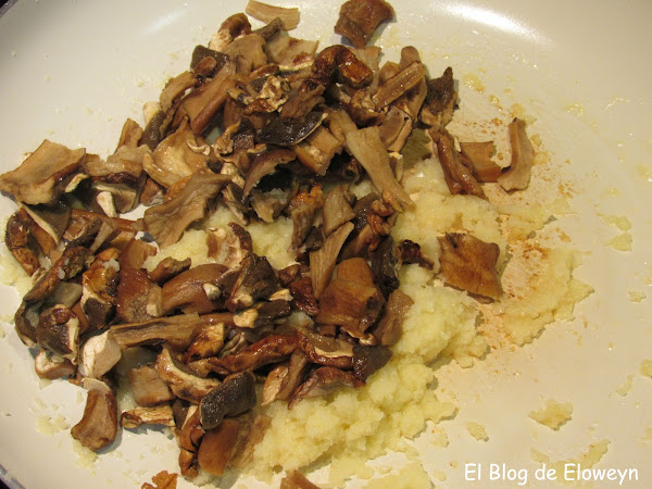Una vez esté dorada la cebolla, añadimos los boletus.