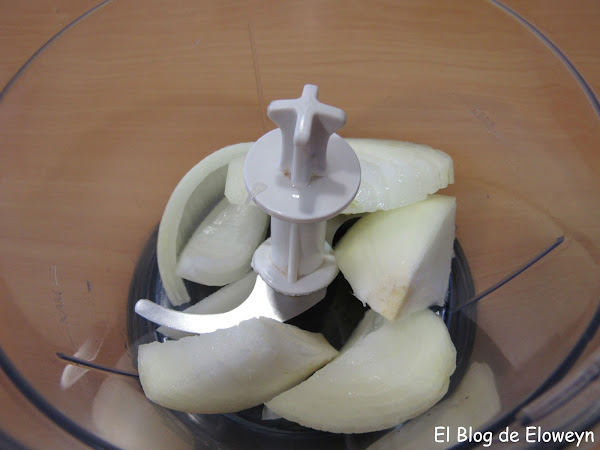 Mientras se va calentando el caldo, picamos la cebolla y la reservamos. Yo usé una picadora. Es más rápido... :)