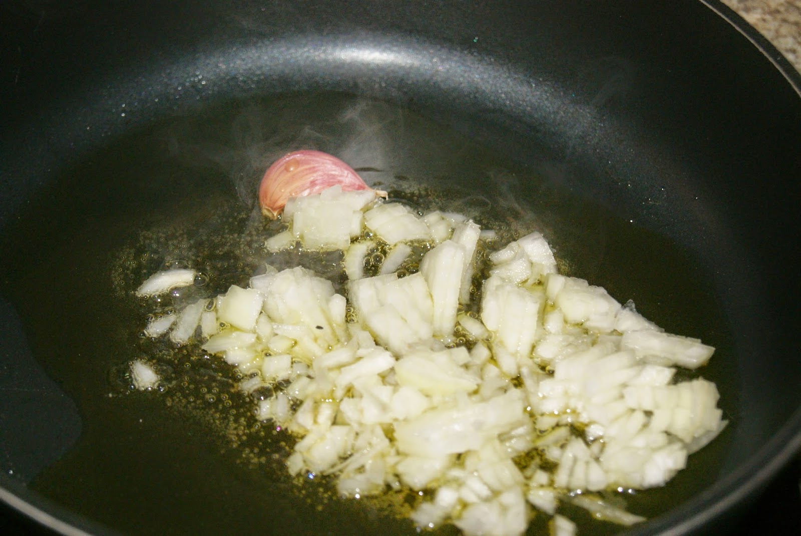 Con un poquito más de aceite pochamos, en la misma satén, la cebolla junto con un ajo sin llegar a dorarla.