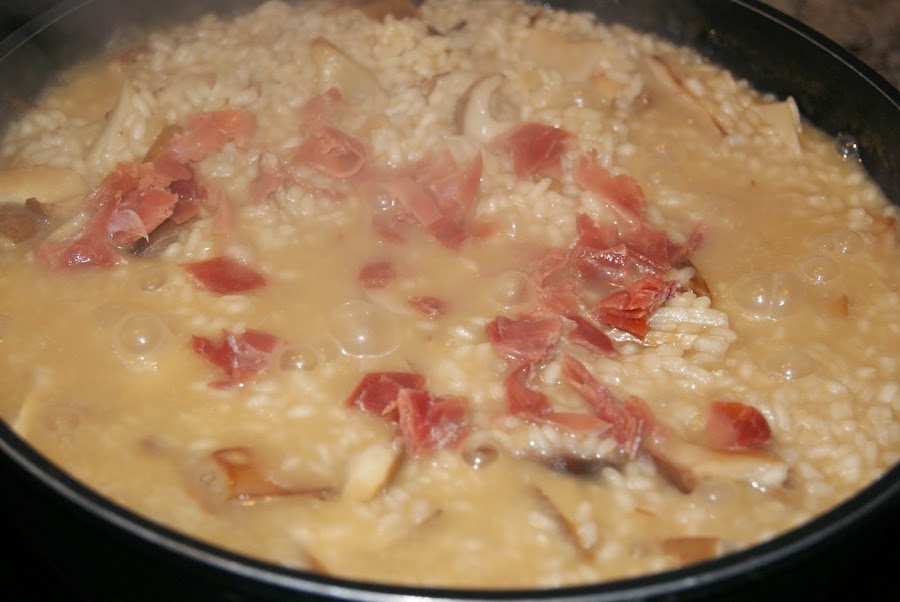 Esta vez he optado por un risotto con boletus y jamón. He aprovechado que tenía caldo casero recién hecho y el plato ha quedado riquísimo. Así que voy a explicar cómo lo he cocinado yo. Como Macarena es una fan incondicional de mis recetas, he pensado en invitarla a comer.