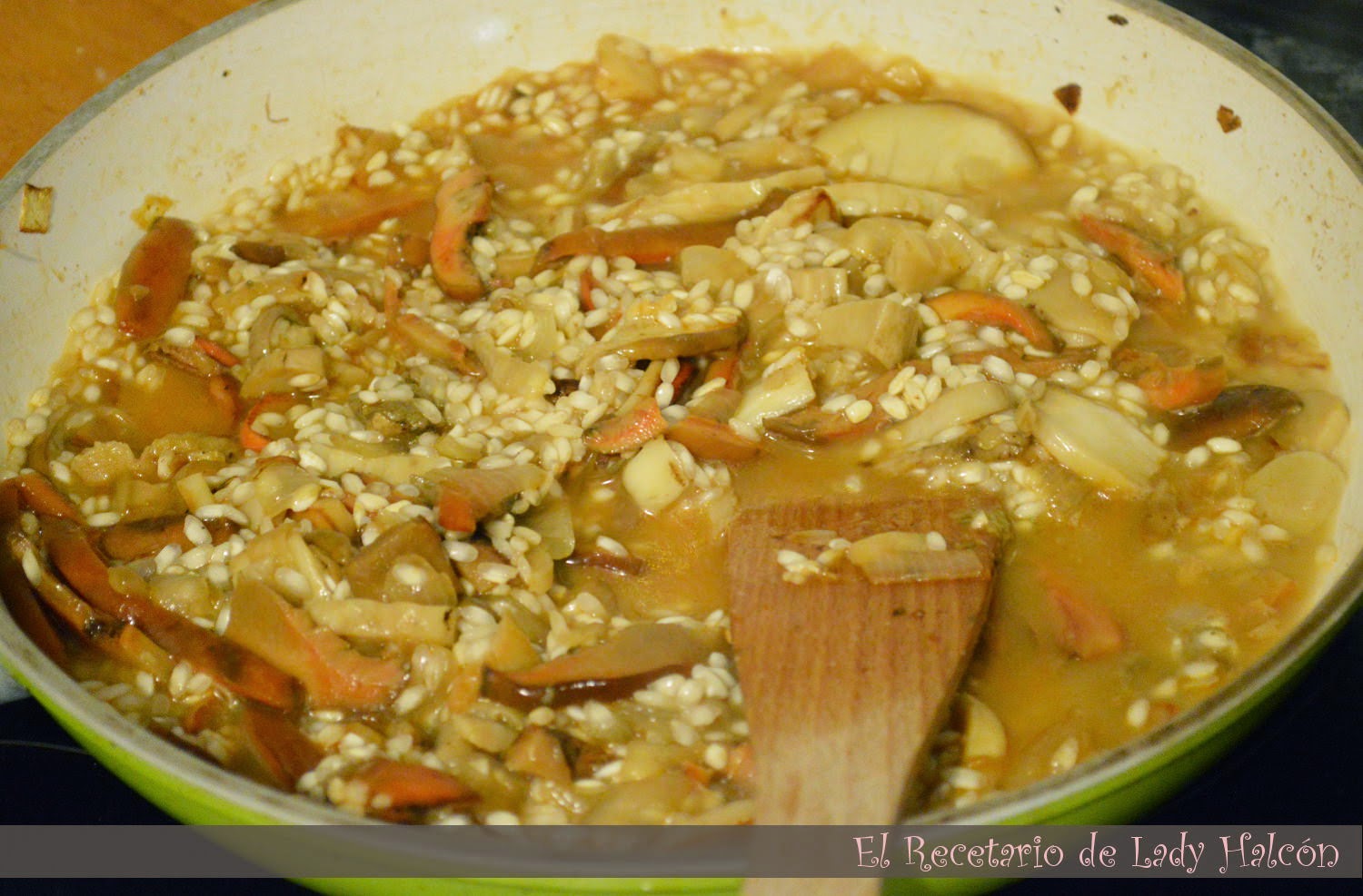 Así que cuando fuimos a comprar y vi los níscalos, me lancé directamente a ellos. Al principio los iba a hacer sencillos, con ajito y perejil a la plancha, que es un plato rápido, sencillo y que me encanta. Pero luego vimos los boletus y el cocinillas entró en acción "¿qué te parece hacer un risotto con estas setas?" Y desde que descubrí mi pasión por el risotto no le puedo decir que no...