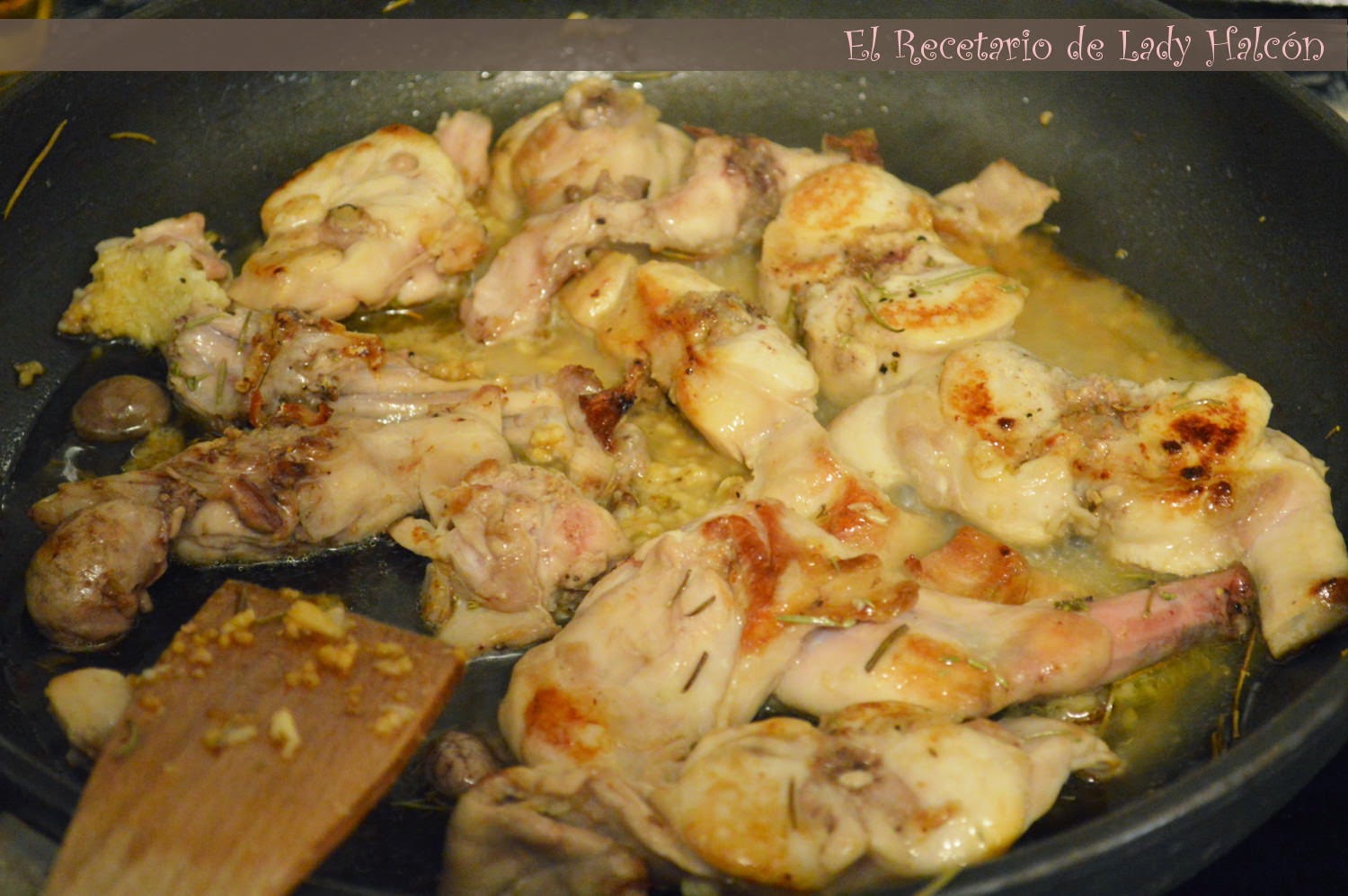 Deja que se haga unos minutos para que el alcohol se evapore y se termine de hacer la carne. Retira la sartén del fuego y ya tenemos hecho el conejo :).