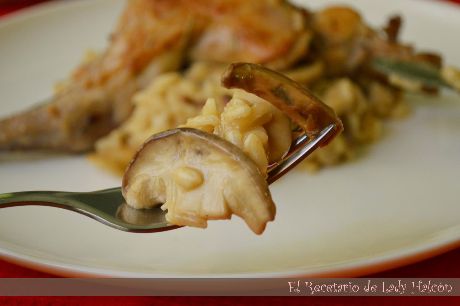 Se puso a ello y el resultado fue delicioso. Durante un día lluvioso comimos un risotto de lo más otoñal y suave, acompañado de un conejo al ajillo que le da un toque de vidilla al plato. Os recomiendo que lo probéis, os hará sentir que tenéis el otoño en vuestro plato. Y si el conejo no os gusta mucho, podéis cambiarlo por pollo. Seguro que también estará muy bueno.