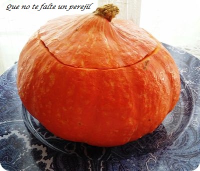 Así que la receta de hoy va dentro de una hermosa calabaza que compré hace poco. Viendo cientos de ellas que había en el super, no pude resistir la tentación de traerme una a casa.