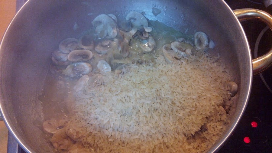 Una vez listo, (recordad que el risotto debe quedar cremoso), echamos el parmesano rallado. Removemos.
