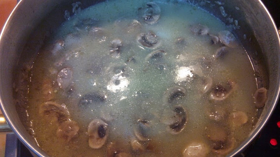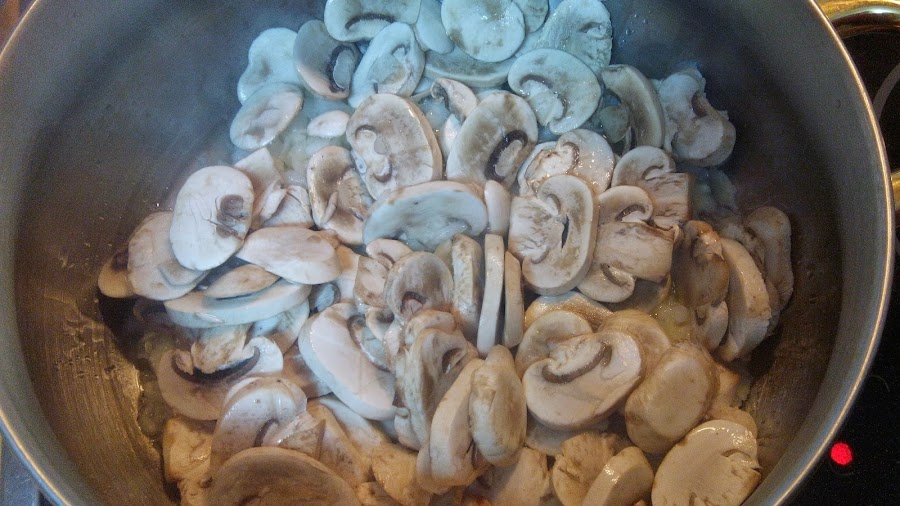 Añadimos los champiñones y dejamos hasta que esté todo pochadito.