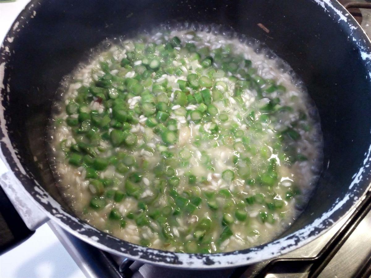 El risotto de espárragos trigueros, es un clásico durante el periodo de primavera, en mayo, cuando salen los espárragos silvestres. Muy versátil cómo ingrediente, ya que queda rico a solas o abinado a carnes o pescados (más recetas de risotto).