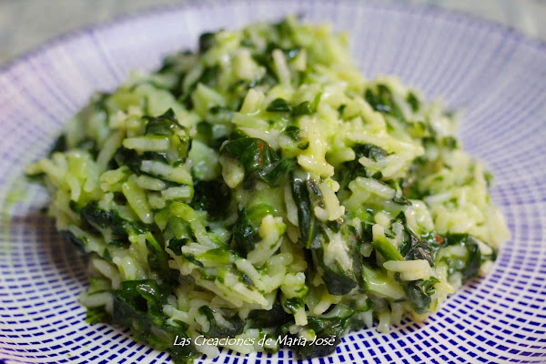 Me encanta el risotto, no lo había hecho nunca de espinacas y esta de vicio, se le puede agregar bacon y seta, pero yo decidí hacerlo solo de espinacas. La receta esta hecha en la Monsieur Cuisine pero para hacerla a mano hay que seguir los mismos pasos pero en una sartén. Espero que os guste.