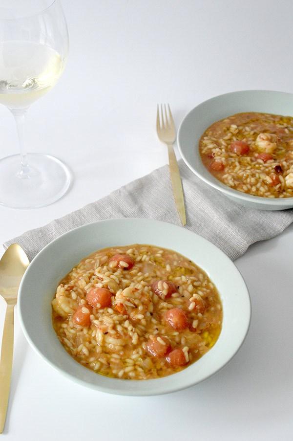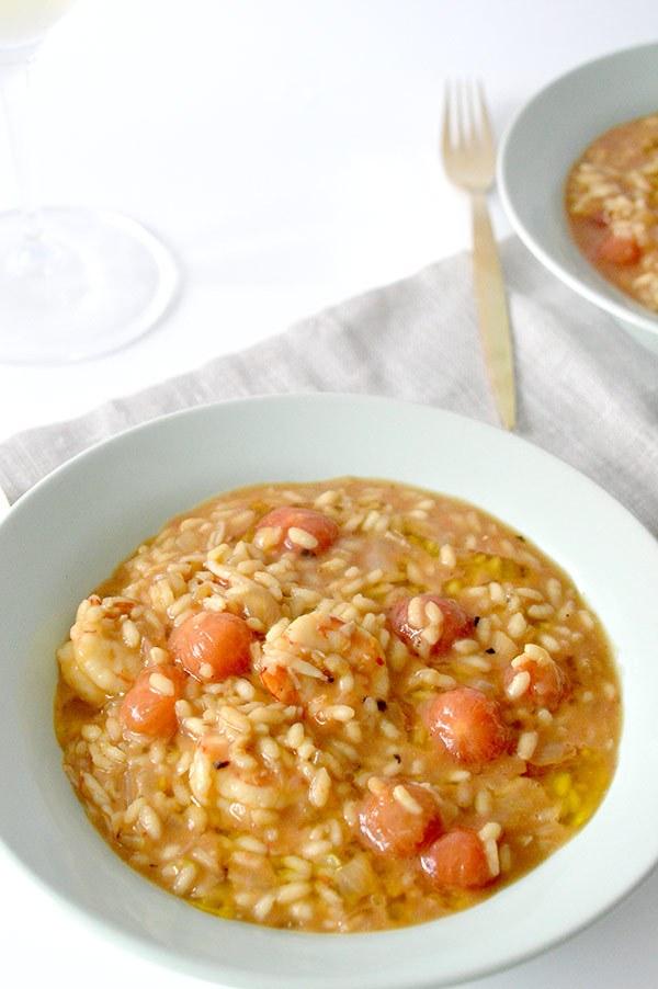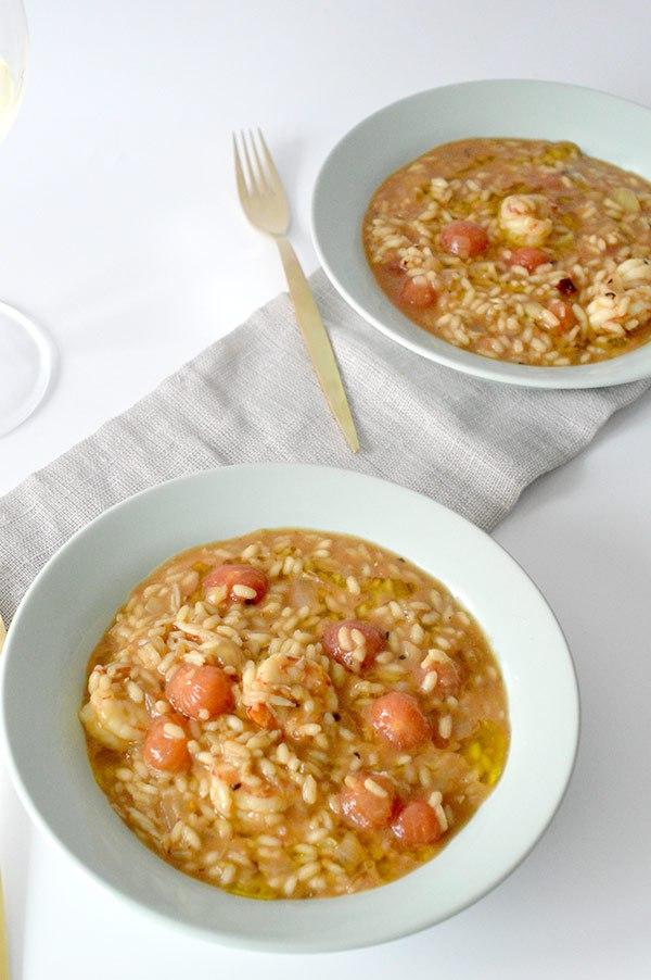 Este risotto que os muestro hoy tiene un sabor delicioso gracias a las gambas, que se complementa perfectamente con la explosión de cada tomate cherry al explotar en tu boca!! es simplemente delicioso. He usado también un bulbo de hinojo, que siempre lo veía en el super ya que esta de temporada y me daba mucha curiosidad…
