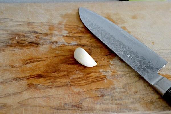 Pelamos el ajo y lo troceamos en cubitos pequeños.