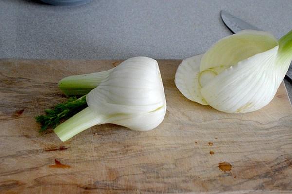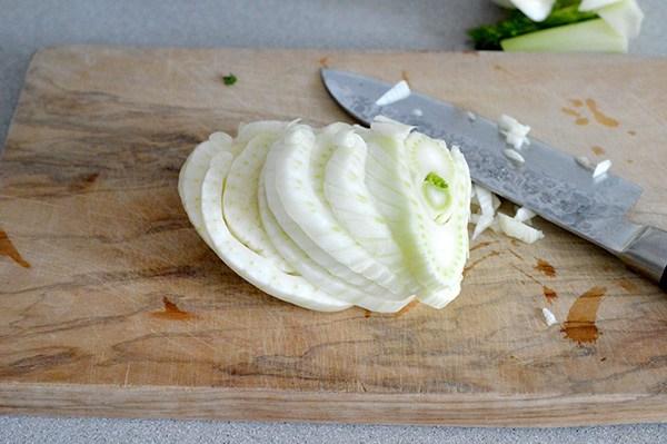 Limpiamos el hinojo y lo troceamos pequeñito.