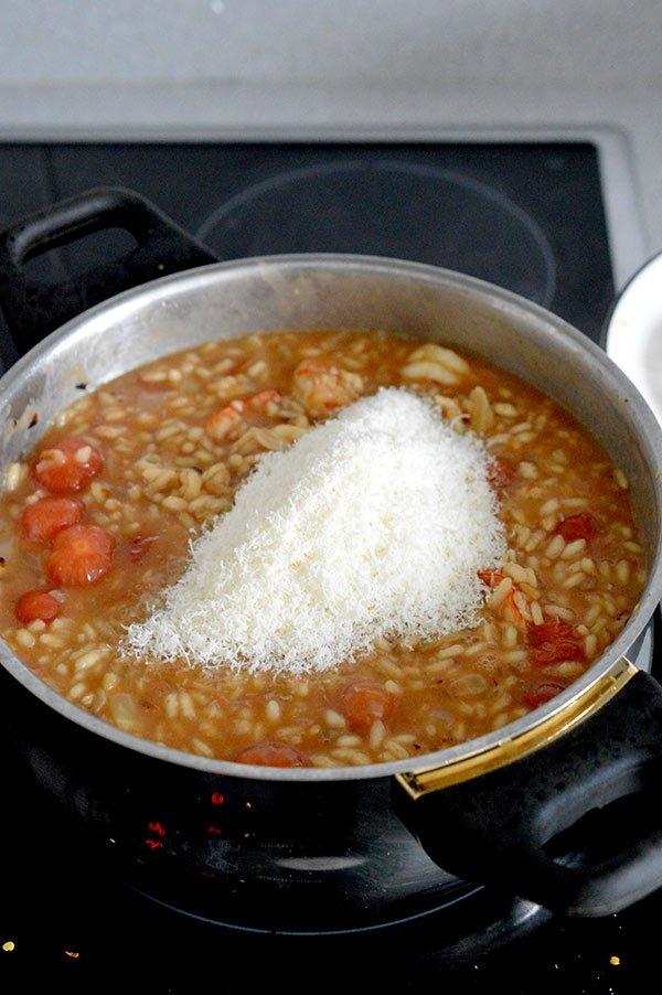 Cuando ya esta retirado el arroz del fuego añadimos el queso recién rayado.