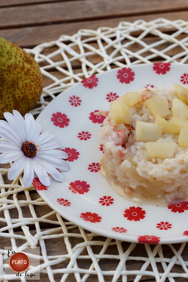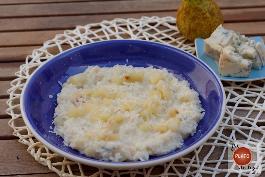 A mi me pasa a veces que leyendo y buscando nuevas recetas, de repente encuentras una que sólo al leer el título crees imaginar el sabor y decides hacerla de inmediato. Eso lo tienes que probar. Pues más o menos me pasó con este risotto. Estaba mirando por internet y me topé con él y casi visualicé la combinación de sabores del queso, dulce y ligeramente picante, y del dulzor suave de la pera...