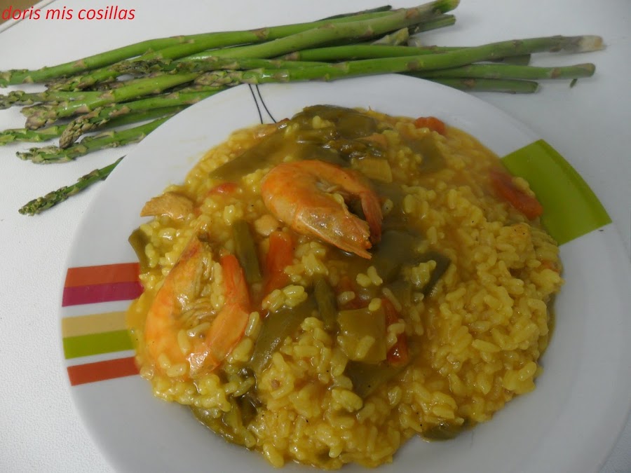 Agregamos los esparragos tronchados a trocitos hasta la parte que no esté dura y las judias verdes.