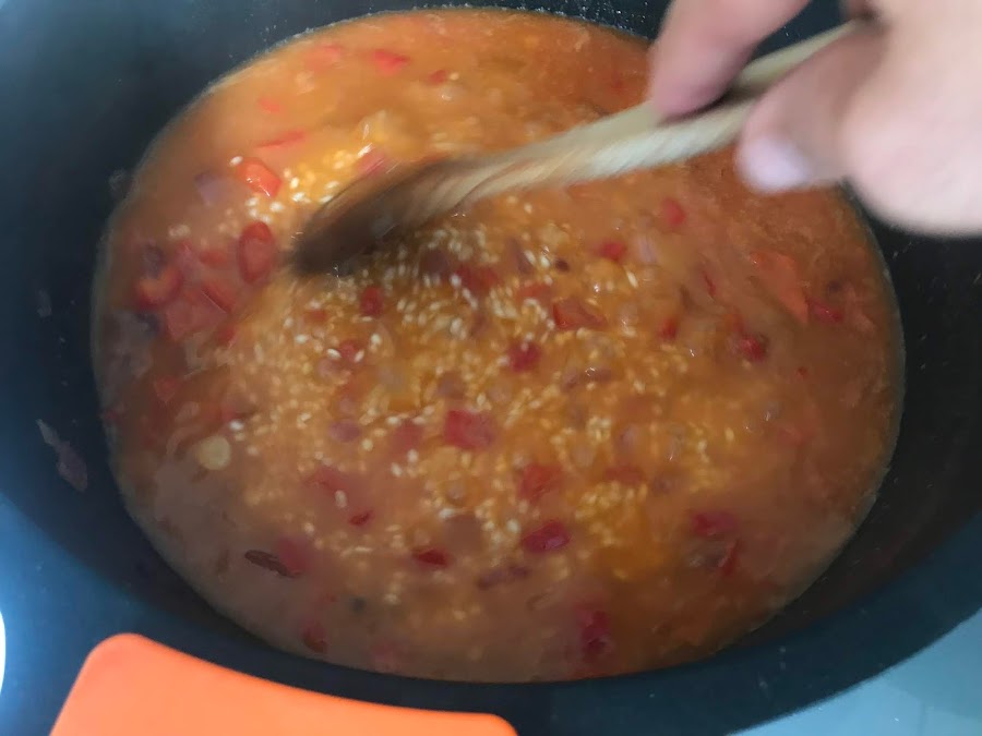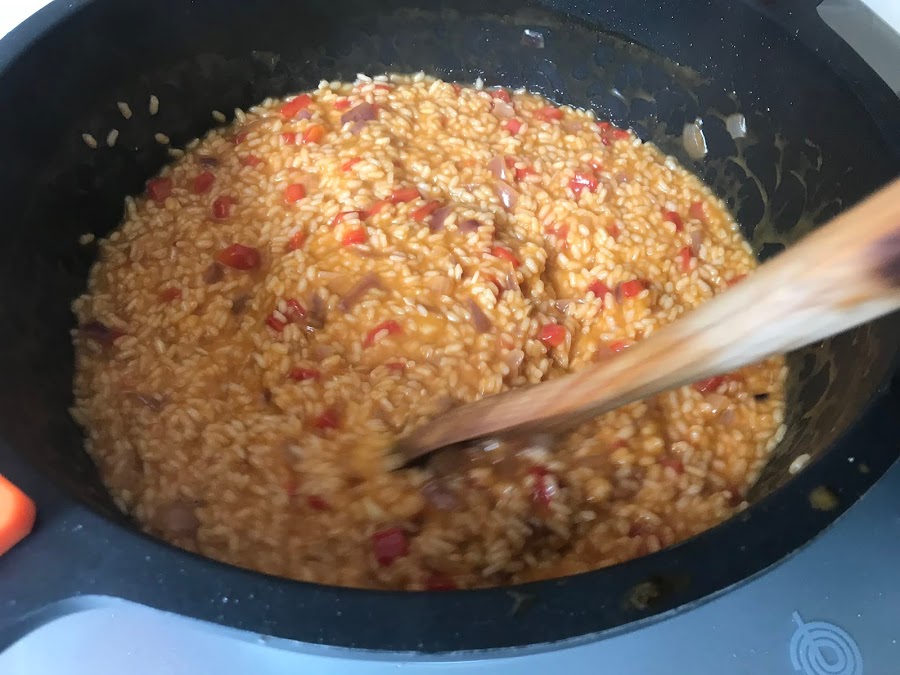 Movemos sin parar durante el tiempo de cocción del arroz.