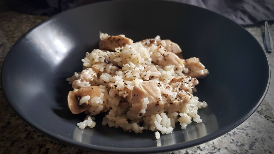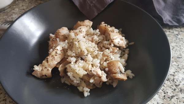 Este risotto de setas y pollo puede convertirse en la perfecta cena. Llena de ingredientes naturales y cocinada en el estuche de vapor. ¡Sin apenas ensuciar nada!