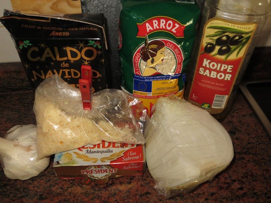 Lo primero que hacemos es preparar el caldo, yo tenía un brick y fue lo que utilicé. Lo ponéis a calentar, ya que es muy importante ir añadiendo el caldo ya caliente.