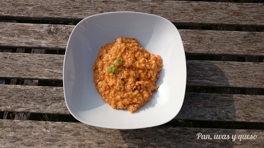 Mientras pensaba cómo aprovecharla recordé que hacía tiempo que había guardado una receta de "5 Sentidos en la Cocina" de un risotto que la llevaba. Así que no me lo pensé más.