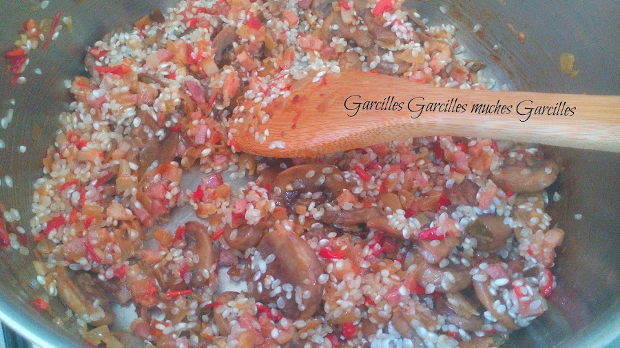 Poner el arroz, freir un poquito