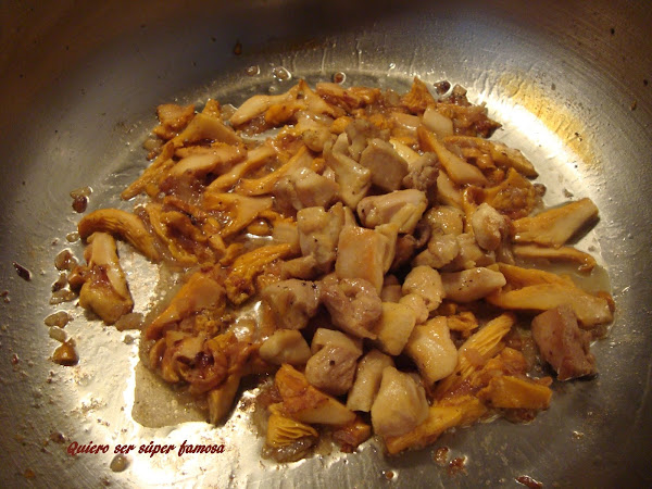 Calentar aceite de oliva y saltear el pollo. Reservar.