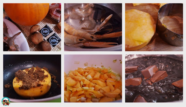 400 gr de calabaza, 100 gr de setas shiitake.