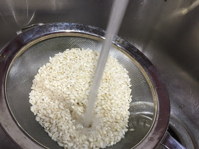 1. Empezamos lavando el arroz. Lo lavamos con agua corriente y reservamos para más adelante.