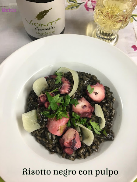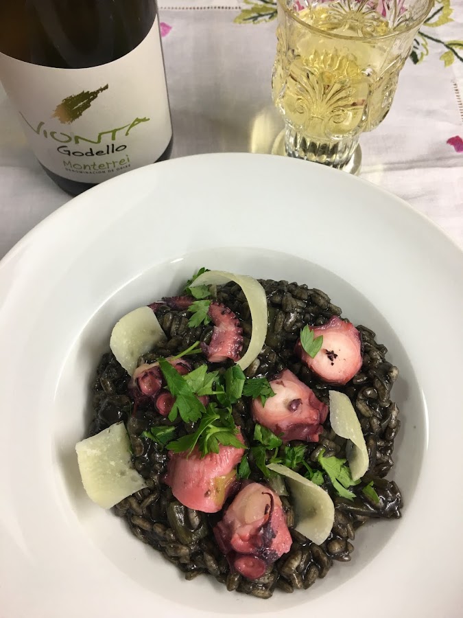 He acompañado con el vino que añadí al risotto, un Godello de Monterrei, el Viontta. Gracias Vicky, querida amiga gallega, por tu amistad y cariño y por enseñarme vinos de tu tierra.
