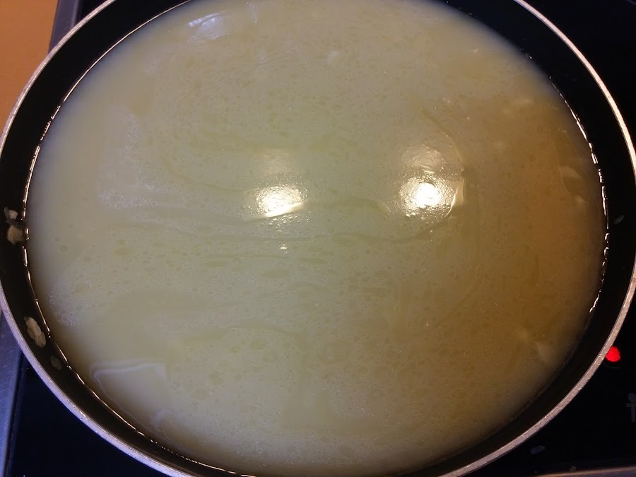 A continuación el caldo de pollo y dejamos que se haga el arroz.