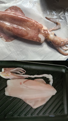 Haremos el calamar a la plancha con sal y aceite de oliva. Para servirlo le pondremos el majado de ajo y perejil por encima.