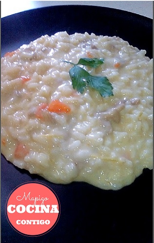 En este momento en que el arroz está casi en su punto añadimos el queso rallado. Apagamos el fuego añadimos la mantequilla y dejamos reposar unos minutos antes de servirlo.
