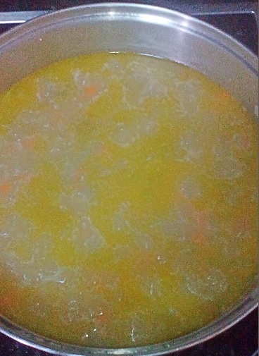 A continuación añadimos el caldo de pollo, que tendremos hecho previamente. Los caldos tanto de carne como de pescado son algo que se pueden elaborar y congelar, de esta forma tendremos siempre listo un buen fondo casero para cualquier plato.