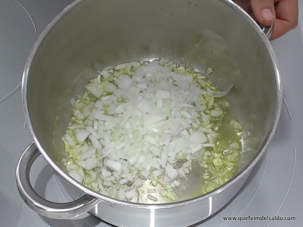 Incorporamos la cebolla tierna picada y la dejamos pochar durante 8 minutos.
